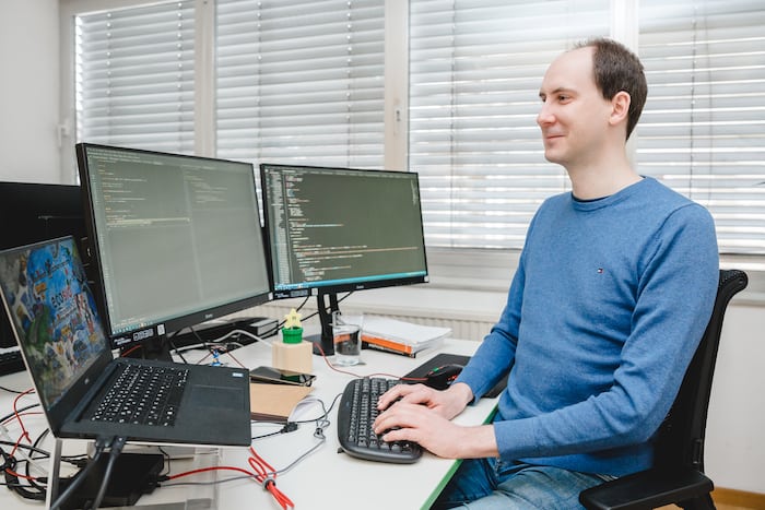 The size, definitely. When I came back we were 9-10 people, so it was really manageable. Marco, Philipp and Gerda were not only developing, but also doing project management. Paul started as a developer and then moved more and more towards project management. Then there were Roman, Robert, Christoph of course, and two UI testers. Then there was Ingo in Germany. It was very manageable, we were divided into three rooms in the old office. Philipp and Robert were, so to speak, the frontend room. In the big room there were six of us *laughs* – it was actually very cosy in there. At that time still in the old office, no air conditioning, we once had a pretty hot summer, the flat was in the attic, it was definitely very warm *laughs*. Now we have hierarchies and numerous teams, but they are still very open and you can still go to anyone. Back then, most people just did programming and project management.