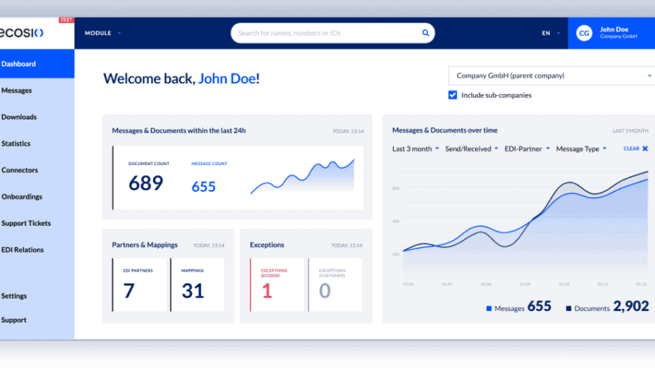 For example, in addition to being compatible with all ERP systems, ecosio’s EDI dashboard (the ecosio.monitor) can be integrated with all ecosio products, from our e-invoicing solution to our Web EDI portal.