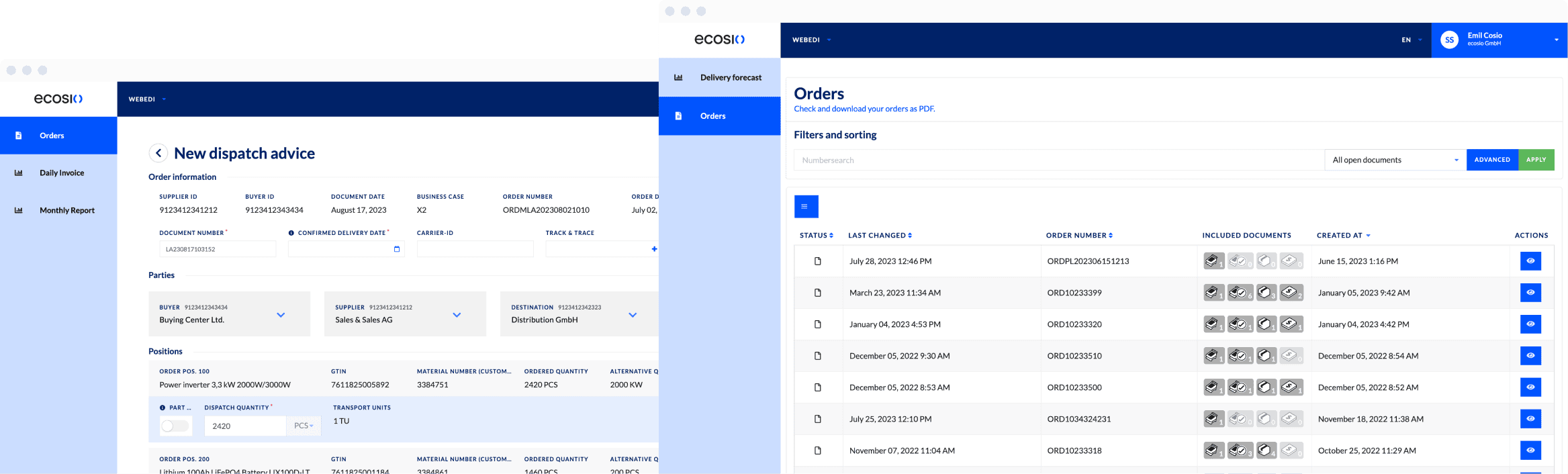 Out-of-the-box integration ensures traffic via ecosio.webedi looks no different to classic EDI and can be monitored with the ecosio.monitor